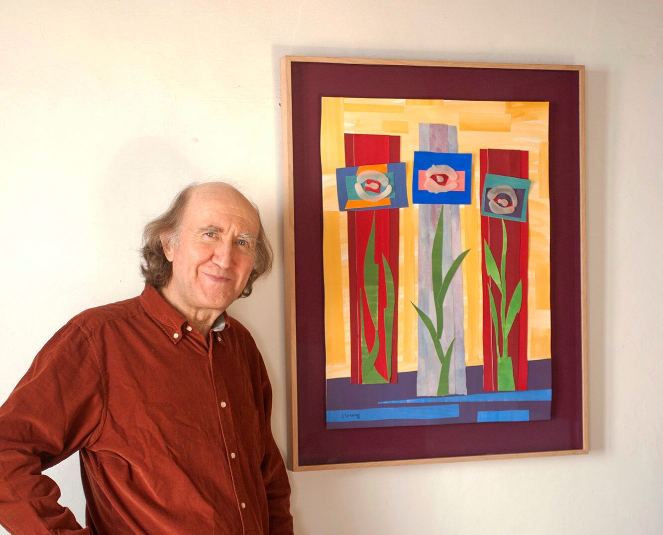 En los últimos años he continuado con los collages de papel hecho a mano por mí cambiando la temática: en lugar de flores predominan los campos de color acompañaddos de frutas y sigo con los rostros de papel o cartón.Con mis hojas de papel hecho a mano he recortado y creado desnudos con el atractivo del color y las texturas del papel. En los últimos años,habiendo mejorado de la Sensibilidad Química Múltiple, he vuelto al óleo pintando objetos cotidianos: cafeteras, tazas, teteras, jarrones, flores, etc… en donde de nuevo el color es el gran protagonista.